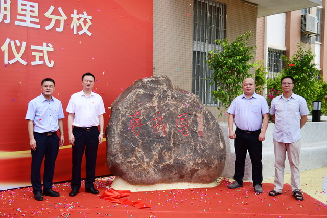 ▲象嶼集團(tuán)黨委副書記、工會主席邵蕰默(左二)、殿前街道黨工委副書記陳劍鳴(右二)、湖里區(qū)教育局教育工會常務(wù)副主席胡萬友(右一)、廈門外國語學(xué)校湖里分校黨總支書記、校長胡劍豪(左一)共同為“有成園”揭牌。