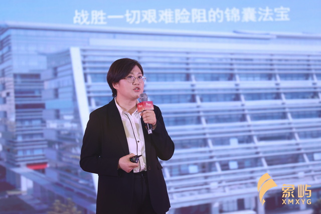 ▲象嶼金控融資租賃事業(yè)部副總監(jiān)邵華帶來《創(chuàng)新發(fā)展 揚帆遠航》的宣講