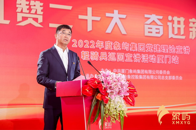 禮贊二十大,奮進新征程。11月28日,2022年度象嶼集團黨建理論宣講輕騎兵巡回宣講廈門站,在剛剛啟用的集團新總部——象嶼集團大廈舉行。象嶼人以這一獨具象嶼特色的黨建文化活動,學(xué)習(xí)宣傳貫徹黨的二十大精神,為新征程錨定紅色原點、鼓足文化風帆,吹響繼往開來、接續(xù)奮斗的號角。廈門市國資委黨委副書記、二級巡視員陳華,集團領(lǐng)導(dǎo)班子,老領(lǐng)導(dǎo)老同志,在廈公司員工代表等現(xiàn)場參加活動。