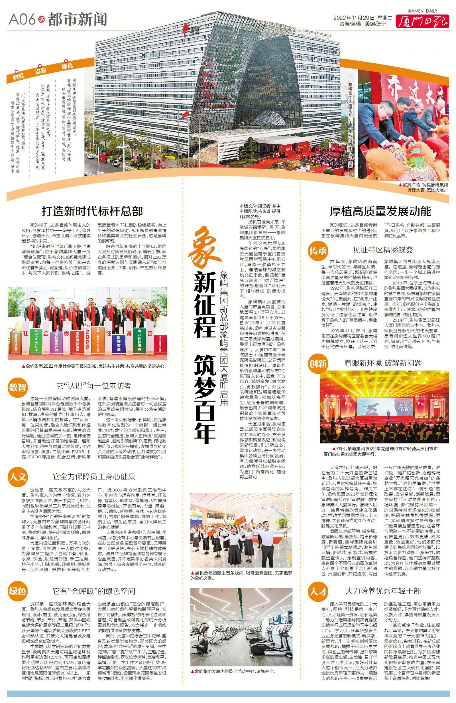 【廈門(mén)日?qǐng)?bào)】象新征程 筑夢(mèng)百年 象嶼集團(tuán)新總部象嶼集團(tuán)大廈昨啟用