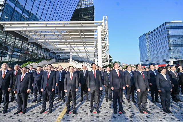上午8:18,莊嚴的升國旗儀式正式開始,象嶼集團領(lǐng)導(dǎo)班子、各行業(yè)各公司負責(zé)人、員工代表等約300人整齊列隊參加。旗手執(zhí)旗前行的鏗鏘足音,象征著新的一年腳踏實地、砥礪前行。當(dāng)鮮艷的五星紅旗在象嶼集團大廈前冉冉升起,全場象嶼人也將愛國之情、報國之志深深地刻進心里。