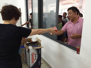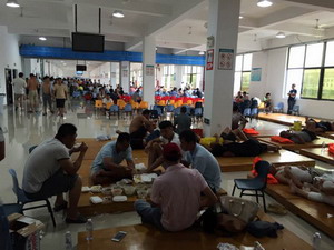 漁港停滿了來自兩岸的漁船,在工作人員的疏導(dǎo)下,漁民們也都上岸避風(fēng)了。上千漁民被安置在了漁港旁的避險(xiǎn)中心,免費(fèi)的食品是這個(gè)臺(tái)風(fēng)天最溫暖的禮物?;蚓筒?,或休息,由于處置得當(dāng),漁民們并沒有臺(tái)風(fēng)來臨的慌亂。有電視有空調(diào),漁民都說,也只有廈門的避險(xiǎn)中心才有這么好的條件。