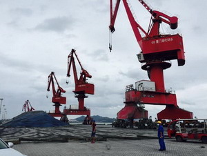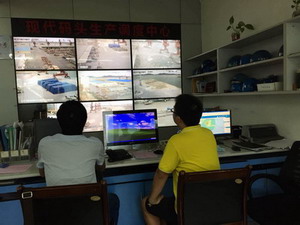 碼頭早已清場(chǎng),所有大型設(shè)備均已拉上防風(fēng)鎖?,F(xiàn)場(chǎng)還有工作人員進(jìn)行最后的加固工作,水泥擋板后面是銅精礦倉(cāng)庫(kù)。碼頭很大,為確保萬無一失,工作人員24小時(shí)守候監(jiān)控,隨時(shí)排除險(xiǎn)情。