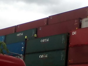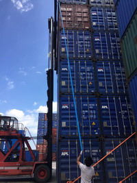 集裝箱堆積起來有20多米高,臺(tái)風(fēng)中,堆箱的穩(wěn)固性就顯得尤為重要。廈門、福州兩地的堆場(chǎng)早在前兩天就著手相關(guān)加固防護(hù)工作。8日白天,又有工作人員迎著大風(fēng)爬上樓頂檢查加固鋼架,不到臺(tái)風(fēng)來臨,時(shí)刻也不掉以輕心。