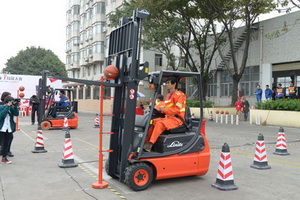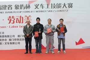 在熱烈的氣氛中,來(lái)自福建省內(nèi)福州、南平、莆田、泉州、廈門、漳州各地的16家單位20支參賽隊(duì)伍的41位叉車駕駛高手們以車代“手”,展開了一場(chǎng)力量與技術(shù)的比拼。本次大賽為省級(jí)總決賽,這些選手均是各地初賽和選拔賽的優(yōu)勝者,獲得過(guò)國(guó)家勞動(dòng)部門頒發(fā)的中級(jí)叉車工(含)以上資格證書或具有3年及以上叉車從業(yè)經(jīng)驗(yàn)。據(jù)悉,獲得本次省級(jí)決賽個(gè)人賽第一名的選手,可按程序申報(bào)“福建省五一勞動(dòng)獎(jiǎng)?wù)隆?;獲得團(tuán)隊(duì)項(xiàng)目第一名的團(tuán)隊(duì),可按程序申報(bào)“福建省工人先鋒號(hào)”。