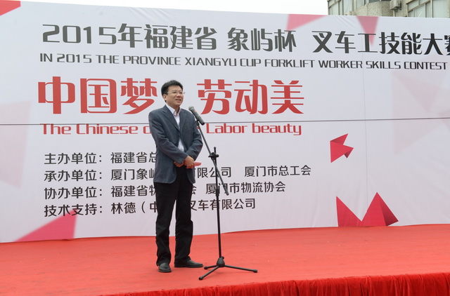 叉車工是港口物流行業(yè)的一個(gè)重要基礎(chǔ)性工種,每個(gè)叉車司機(jī)技能水平的高低,直接影響港口物流公司的集聚輻射能力。為了提高叉車工的技能水平,促進(jìn)廣大職工鉆業(yè)務(wù)、學(xué)技術(shù),以本領(lǐng)提升促轉(zhuǎn)型升級(jí),成為現(xiàn)代港口物流領(lǐng)域的行家里手,2015年12月5日,由福建省總工會(huì)主辦,廈門象嶼集團(tuán)有限公司、廈門市總工會(huì)承辦的“中國(guó)夢(mèng)?勞動(dòng)美”2015年福建省“象嶼杯”叉車工職業(yè)技能大賽在廈門舉行。福建省總工會(huì)副主席丁文清,象嶼集團(tuán)有限公司黨委書記、董事長(zhǎng),省勞模協(xié)會(huì)副會(huì)長(zhǎng)王龍雛,廈門市總工會(huì)常務(wù)副主席陳永紅,省總工會(huì)經(jīng)濟(jì)部部長(zhǎng)林國(guó)雄,市開發(fā)區(qū)和電子信息工委主任文建軍,象嶼集團(tuán)工會(huì)主席邵蕰默,市總工會(huì)經(jīng)濟(jì)部部長(zhǎng)游坤平等領(lǐng)導(dǎo)出席并觀摩比賽。