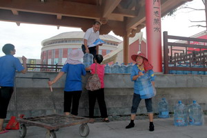 大嶝小鎮(zhèn)被視為兩岸經(jīng)貿(mào)交流的重要平臺(tái),入駐商戶(hù)上千家。一停電,大嶝小鎮(zhèn)的全體人員立即進(jìn)入緊急工作狀態(tài)。啟用應(yīng)急柴油發(fā)電機(jī)發(fā)電,除確保連續(xù)24小時(shí)應(yīng)急供電外,還貼心地設(shè)置了臨時(shí)手機(jī)充電處,為商戶(hù)及當(dāng)?shù)鼐用裉峁┍憷?。入駐的商戶(hù)中也不乏愛(ài)心人士,他們組織義工,資助桶裝水500桶,有序派發(fā)給缺水居民?!叭慷际敲赓M(fèi)的?!币?yàn)樨?zé)任,因?yàn)榈懒x!