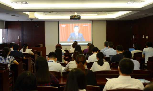 10月21日上午,象嶼集團黨委組織部分員工收看紀念紅軍長征勝利80周年大會現(xiàn)場直播,集團董事長、黨委副書記張水利與集團各黨(總)支部黨員代表一同全程認真收看。