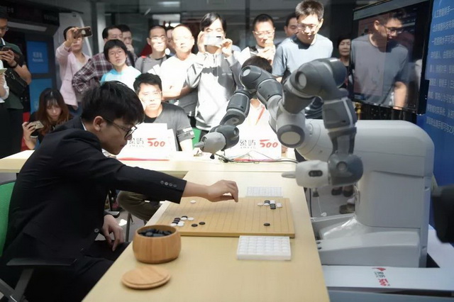 從開幕式就擺好擂臺的圍棋機(jī)器人“棋智”,在現(xiàn)場也接受了不少愛好者的挑戰(zhàn)。挑戰(zhàn)宣言是“只要下滿50手(機(jī)器人執(zhí)白棋)勝率達(dá)到30%及以上,均獲得主辦送出精美禮品”。不過,這位擁有智能眼、手、腦,造型可愛的圍棋機(jī)器人,擁有可分等級的圍棋智能對弈系統(tǒng),落子超級精準(zhǔn)迅速,初始勝率40%。除了開幕式柯潔鎮(zhèn)住了它,現(xiàn)場的愛好者們都沒能挑戰(zhàn)成功。不過,挑戰(zhàn)者們依然興致勃勃,“能親手跟智能機(jī)器人過招,實在太過癮了!”