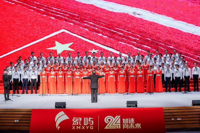 全國各地的象嶼人與共建單位舉辦愛國主義歌曲合唱會演,贊美祖國,祝福廈門。