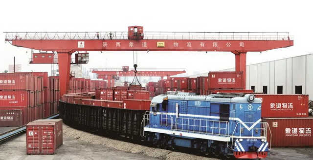 河南省三門峽市,三門峽象道物流園區(qū)車站里,滿載氧化鋁的100個集裝箱即將發(fā)往新疆昌吉,用于制造鋁錠。這一列鐵路集裝箱裝載的氧化鋁重達(dá)3000噸,相當(dāng)于95輛大型貨車的運輸量,而能耗和污染物排放僅是公路運輸?shù)?5%和8%。