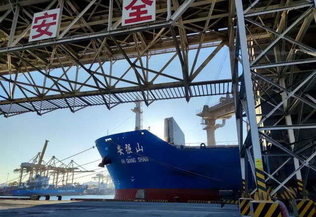 廣東省廣州市,象嶼股份與中遠(yuǎn)海散運合作的班輪,滿載5萬噸玉米,??吭趶V州新港。這樣的班輪,每30天就有一班。這些糧食從富錦走鐵路到大連,從大連走海路到廣州,公路運輸比重不到全程的1/10,運輸成本大大降低。