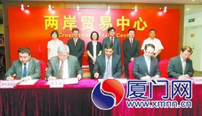 如果說廈門當(dāng)前面臨難得的歷史性發(fā)展機(jī)遇是“天時(shí)”,廈門與臺(tái)灣的“五緣”優(yōu)勢(shì)是“地利”,那么,強(qiáng)化責(zé)任、狠抓落實(shí)、創(chuàng)造性地開展工作就是“人和”。為了進(jìn)一步深化兩岸貿(mào)易中心平臺(tái)服務(wù)功能,提升兩岸貿(mào)易便利化水平,強(qiáng)化廈門作為對(duì)臺(tái)窗口城市的戰(zhàn)略地位,昨日上午,在市委市政府的統(tǒng)一部署下,市商務(wù)局、象嶼保稅區(qū)管委會(huì)等部門的共同推動(dòng)下,廈門市象嶼集團(tuán)與臺(tái)灣地區(qū)的“物流一條龍”——吉時(shí)國(guó)際航運(yùn)股份有限公司、關(guān)貿(mào)網(wǎng)路股份有限公司、新竹物流股份有限公司、臺(tái)北港貨柜碼頭有限公司共同簽訂戰(zhàn)略合作框架兩岸貿(mào)易便利化及跨境電子商務(wù)合作協(xié)議。兩岸電子商務(wù)產(chǎn)業(yè)的合作之手,在兩岸貿(mào)易中心緊緊地握在了一起。