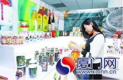 兩岸貿(mào)易中心的臺(tái)灣產(chǎn)品琳瑯滿目,吸引市民購買。