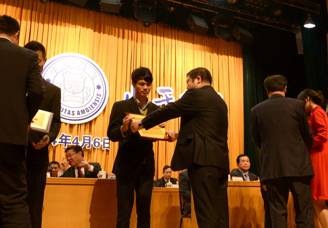 4月6日,廈門大學(xué)建校93周年慶祝大會(huì)隆重召開,會(huì)上頒發(fā)了2014年各項(xiàng)獎(jiǎng)教金、獎(jiǎng)學(xué)金。集團(tuán)公司陳方副總裁受邀為“象嶼集團(tuán)獎(jiǎng)學(xué)金”獲獎(jiǎng)學(xué)生代表頒獎(jiǎng)。