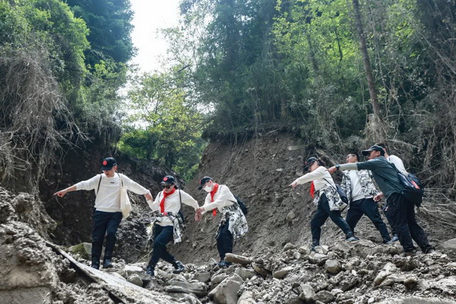 陳方總裁與鄧啟東總經(jīng)理當先鋒打頭陣,帶領先遣隊徒步穿越紅軍小道,克服螞蟥溝的心理障礙和高海拔的缺氧不適,跨越1100米的垂直高度,親身體驗攀峻嶺、過草地的長征歷程,感受共產(chǎn)黨人革命理想高于天的堅定力量,彰顯國有企業(yè)緊跟國家戰(zhàn)略先行先試的先鋒精神。