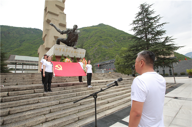重溫入黨誓詞,牢記入黨初心。在紅軍飛奪瀘定橋紀念碑前,在鮮紅的黨旗下,劉志宏書記帶領全體黨員舉起右拳,神情莊重、精神飽滿,齊聲重溫入黨誓詞,感受涌動的初心,激發(fā)前行的動力。鏗鏘有力的宣誓聲響徹現(xiàn)場,宣示著“挑戰(zhàn)之旅”廣大黨員堅定不移的政治信念和矢志奮斗的堅強決心。