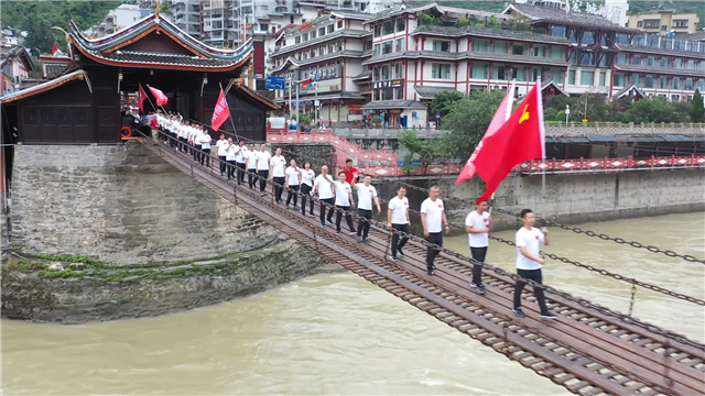 飛奪瀘定橋,是紅軍長征路上的關鍵一仗,是一場比智慧、比毅力、比勇氣的戰(zhàn)斗。“挑戰(zhàn)之旅”隊伍在黨旗和支線旗的引領下,行進在鐵索橫江的瀘定橋上,一幅幅戰(zhàn)斗畫面在腦海中浮現(xiàn),一聲聲吶喊和槍炮聲猶在耳畔回蕩,激發(fā)起象嶼建設集團團隊干事創(chuàng)業(yè)、勇于挑戰(zhàn)的工作熱情。