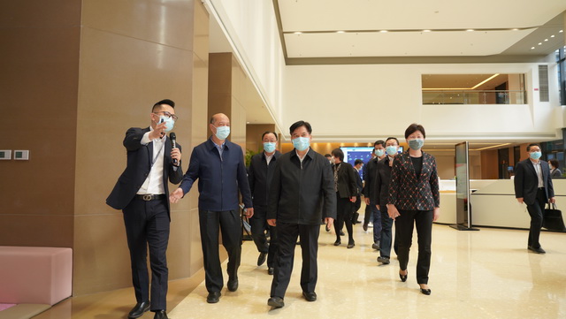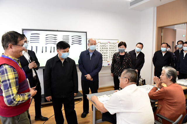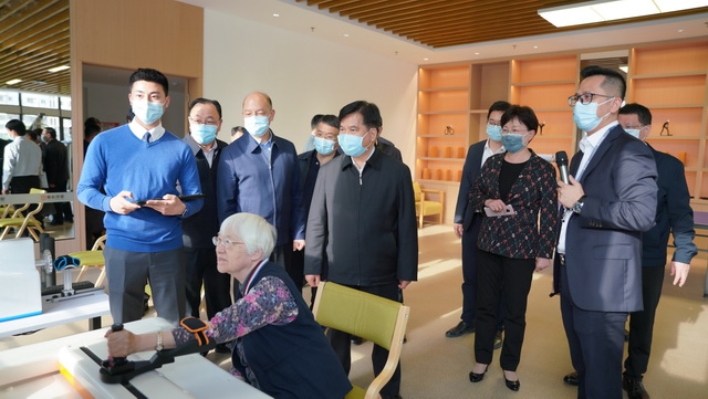 在聽取項目介紹后,調研組一行參觀了休閑文化配套空間、護理樓、養(yǎng)老公寓等區(qū)域,對象嶼慈愛的長者入住進展、醫(yī)養(yǎng)結合、慈愛學院課程開設、疫情防控等整體情況及運營成果進行深入了解,重點關注了包括“智慧一卡通”、全院可視化管理系統(tǒng)、智能餐盤等在內的智慧化養(yǎng)老服務體系,并給予充分肯定。