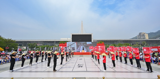 以天為蓋,以地為棋盤(pán),32位頭戴斗笠、手舉刀旗的志愿者正身臨“棋”境,搭配武俠風(fēng)背景樂(lè),在五一文化廣場(chǎng)上行走廝殺,指揮他們的是象棋特級(jí)大師郝繼超、張學(xué)潮。