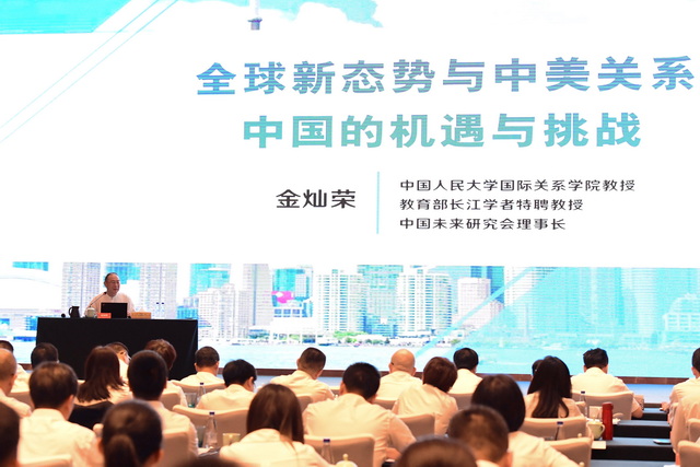 為更好把握“百年未有之大變局”,加強(qiáng)對(duì)國際形勢、宏觀環(huán)境的研判與應(yīng)對(duì),本次會(huì)議還邀請中國人民大學(xué)國際關(guān)系學(xué)院副院長金燦榮教授帶來《全球新態(tài)勢與中美關(guān)系:中國的機(jī)遇與挑戰(zhàn)》專題講座。金教授以高站位和廣視野,深刻分析國際熱點(diǎn)問題和世界經(jīng)濟(jì)重塑的基本趨勢,從新的國際格局、新的現(xiàn)代化模式、新的工業(yè)革命、新的全球治理等視角解析“百年未有之大變局”,提出對(duì)中國企業(yè)未來發(fā)展的建議。