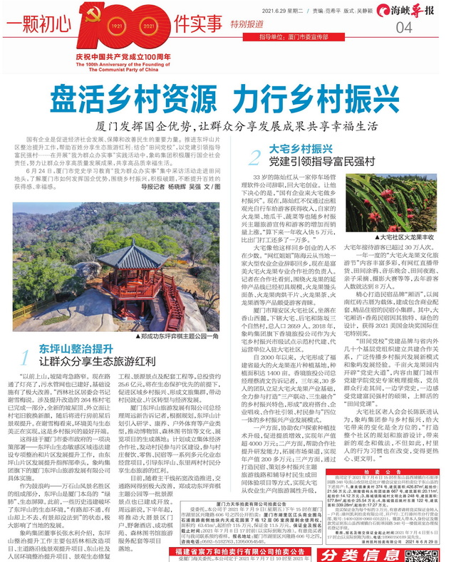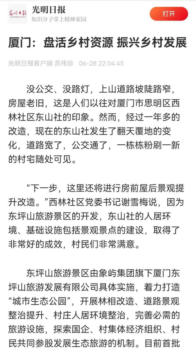 如今的大宅正加快形成品牌效應,成為“看得見山,望得見水,記得住鄉(xiāng)愁”的都市田園典范和廈門新晉的旅游目的地,走出一條“三產聯動”引領鄉(xiāng)村振興的光明道路。
