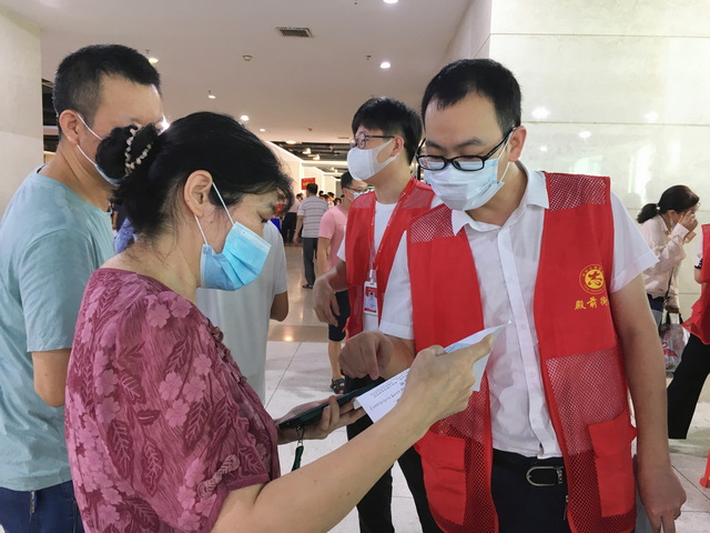 這項看似簡單的工作,實則是對服務(wù)精神的極大考驗。前來接種疫苗的人群中,有不識字的,有不會使用智能手機的,有年齡偏大視力不佳的,也有操著各種方言交流困難的。象嶼青年們耐心地一遍遍講解,一遍遍示范操作。嘴巴說干了,嗓子說啞了,身上濕透了,但他們說:“寧可自己多流汗,也絕不讓群眾白跑一趟、多跑一趟,不把疫情隱患留到下一天。”
