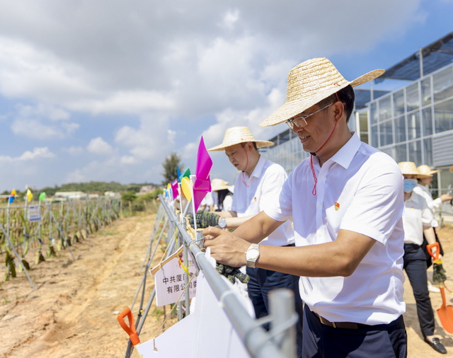 據(jù)介紹,此舉旨在將黨史學(xué)習(xí)教育與助力鄉(xiāng)村振興相結(jié)合,將黨建培訓(xùn)與工作實(shí)踐相結(jié)合,將黨務(wù)工作與田間體驗(yàn)相結(jié)合,打造有案例、有經(jīng)驗(yàn)、接地氣的黨建實(shí)訓(xùn)基地,鼓勵(lì)象嶼人發(fā)揚(yáng)草根精神,身體力行助農(nóng)惠農(nóng)。在新開辟的“象嶼果園”里,象嶼集團(tuán)黨委領(lǐng)導(dǎo)率領(lǐng)黨員代表們認(rèn)養(yǎng)地塊、栽種希望。他們拿起工具,親手種下最新品種的火龍果,寓意鄉(xiāng)村振興的事業(yè)茁壯成長(zhǎng)、結(jié)出甜蜜碩果。