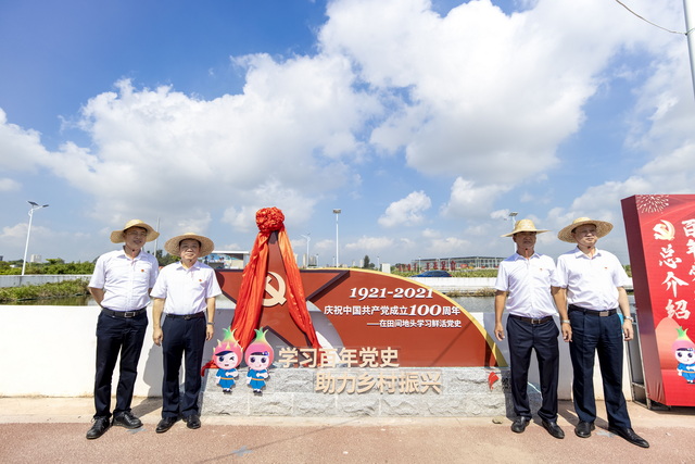 翔安大宅社區(qū)坐落于香山西麓,火龍果種植面積達(dá)1400畝,是福建省黨建富民強(qiáng)村示范基地、廈門市級(jí)鄉(xiāng)村振興示范村。“百年黨史大道”就蜿蜒在火龍果田間,沿途選取建黨百年來與農(nóng)村農(nóng)業(yè)發(fā)展改革相關(guān)的13個(gè)關(guān)鍵節(jié)點(diǎn)進(jìn)行重點(diǎn)展示,生動(dòng)講述了“鄉(xiāng)村振興,關(guān)鍵在黨”的道理。