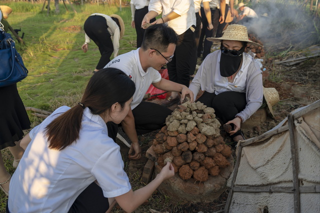 室內(nèi)黨課結(jié)束后,學(xué)員們還走出教室,跟隨大宅村民下到田間地頭,進(jìn)行田間采摘、撿拾柴火、大鍋灶生火做飯等農(nóng)事體驗(yàn),一方面感受鄉(xiāng)村振興帶來的鄉(xiāng)村蛻變,一方面體會(huì)農(nóng)事勞作的艱辛與現(xiàn)在美好生活的來之不易。