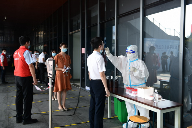 為控制疫情蔓延,廈門市啟動(dòng)全市全員核酸檢測(cè),要求做到“應(yīng)檢盡檢”,不漏一人。象嶼集團(tuán)第一時(shí)間響應(yīng),主動(dòng)聯(lián)系檢測(cè)機(jī)構(gòu),在廈門國(guó)際航運(yùn)中心開設(shè)核酸檢測(cè)點(diǎn),組織集團(tuán)員工就近檢測(cè),緩解社區(qū)等公共檢測(cè)點(diǎn)的檢測(cè)壓力。9月15日上午9點(diǎn),核酸檢測(cè)準(zhǔn)時(shí)開始。象嶼員工們?cè)谥驹刚叩囊龑?dǎo)下,佩戴口罩,有序排隊(duì),保持安全距離,分批錯(cuò)峰完成采樣。