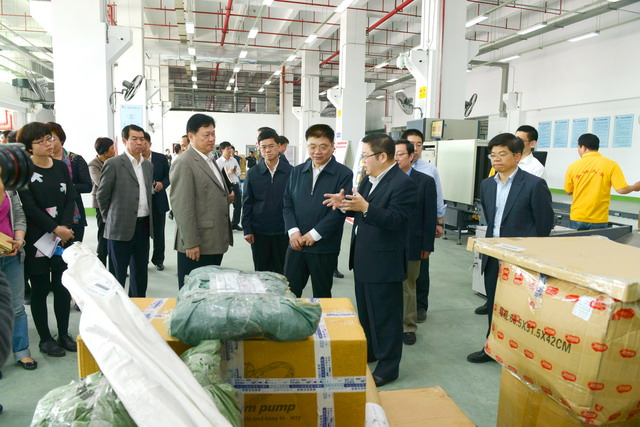 調(diào)研現(xiàn)場(chǎng),王蒙徽書記等市領(lǐng)導(dǎo)聽取了王龍雛董事長(zhǎng)、陳方副總裁對(duì)廈門跨境電商產(chǎn)業(yè)園情況的介紹,察看了作業(yè)現(xiàn)場(chǎng)。王書記在調(diào)研過程中對(duì)象嶼集團(tuán)在自貿(mào)試驗(yàn)區(qū)推動(dòng)過程中邊摸索、邊推動(dòng),敢于先行先試,開拓海運(yùn)快件物流新通路,構(gòu)建廈門跨境電商產(chǎn)業(yè)園的新思維、新模式給予了肯定,對(duì)海關(guān)、國(guó)檢給予的鼎力合作支持表示感謝。
