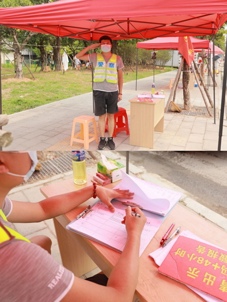 在海滄新陽隔離點,象嶼志愿者自9月27日進駐以來,就全力做好被隔離人員的生活服務工作,如分餐、藥物運輸、生活垃圾清運等。用厚厚的防護服包裹全身,淋漓的汗水、悶熱感甚至窒息感接踵而來,但他們不叫苦不叫累,每天仍堅持工作超過10個小時。在海翔大道東埔村檢查站點,象嶼志愿者從9月17日開始的交通協(xié)管任務也仍在持續(xù)。他們以每天3班、24小時不間斷的堅守,確保疫情不擴散。