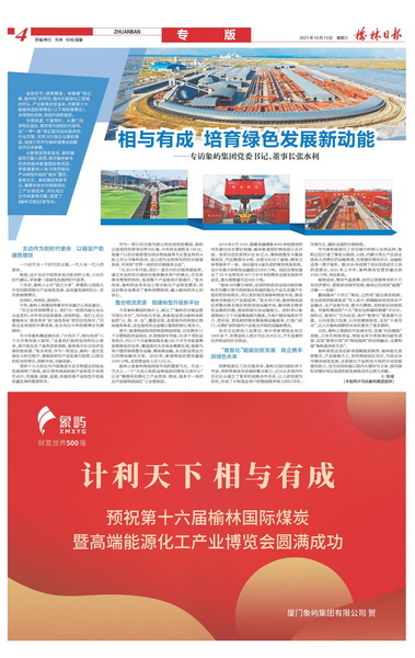 象嶼集團(tuán)黨委書記、董事長張水利就能源化工產(chǎn)業(yè)鏈延伸、深化地企合作共贏等問題,接受了《榆林日報》記者專訪。