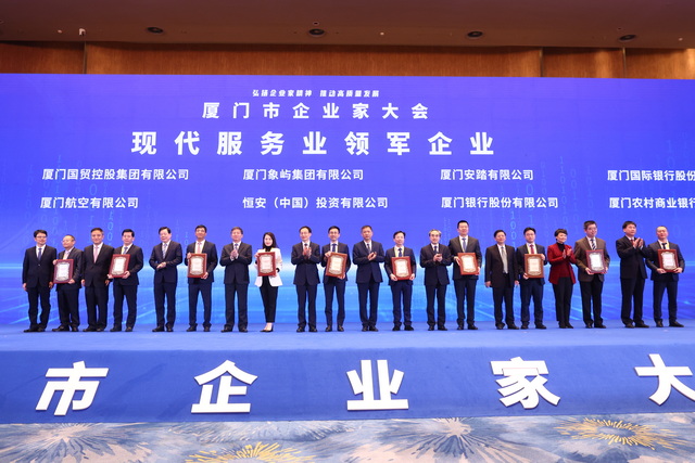 會(huì)上宣布2021年“廈門現(xiàn)代農(nóng)業(yè)領(lǐng)軍企業(yè)”“廈門新經(jīng)濟(jì)領(lǐng)軍企業(yè)”“廈門先進(jìn)制造業(yè)領(lǐng)軍企業(yè)”“廈門現(xiàn)代服務(wù)業(yè)領(lǐng)軍企業(yè)”“廈門建筑業(yè)領(lǐng)軍企業(yè)”榜單,并為上榜企業(yè)授牌。象嶼集團(tuán)榮膺“廈門現(xiàn)代服務(wù)業(yè)領(lǐng)軍企業(yè)”。