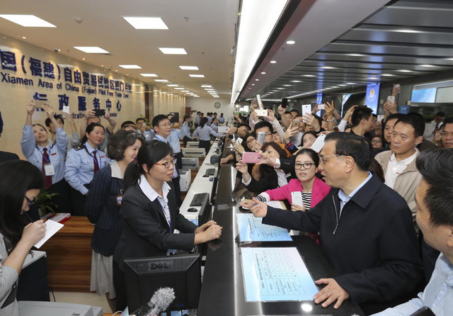 總理來(lái)了!由象嶼集團(tuán)開(kāi)發(fā)運(yùn)營(yíng)的兩岸貿(mào)易中心火了!李克強(qiáng)4月22日在福建自貿(mào)區(qū)廈門片區(qū)象嶼綜合服務(wù)大廳了解簡(jiǎn)政放權(quán)和商事制度改革等情況??偫碚f(shuō),自貿(mào)區(qū)不是政策洼地而是改革高地,要大膽闖勇于創(chuàng)。昨天你們掛牌,今天我來(lái)為你們助力!