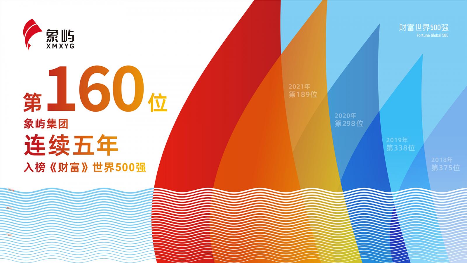 8月3日,2022年《財(cái)富》世界500強(qiáng)榜單揭曉。象嶼集團(tuán)以750.94億美元的營收,排名第160位,較去年上升29位。